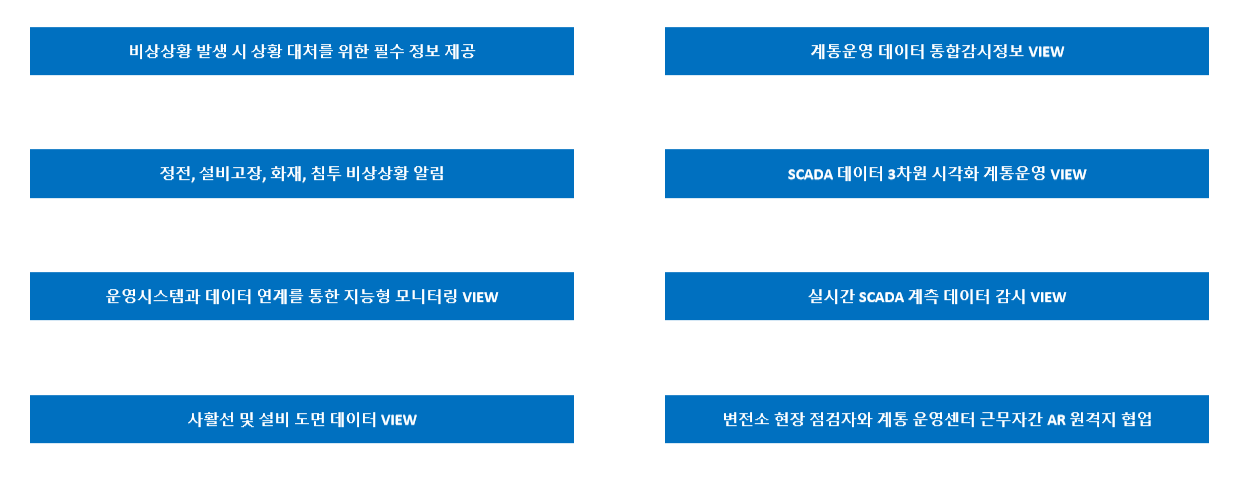 화재관리, 설비관리 등 계통운영 안전을 위한 통합 모니터링 시스템입니다.