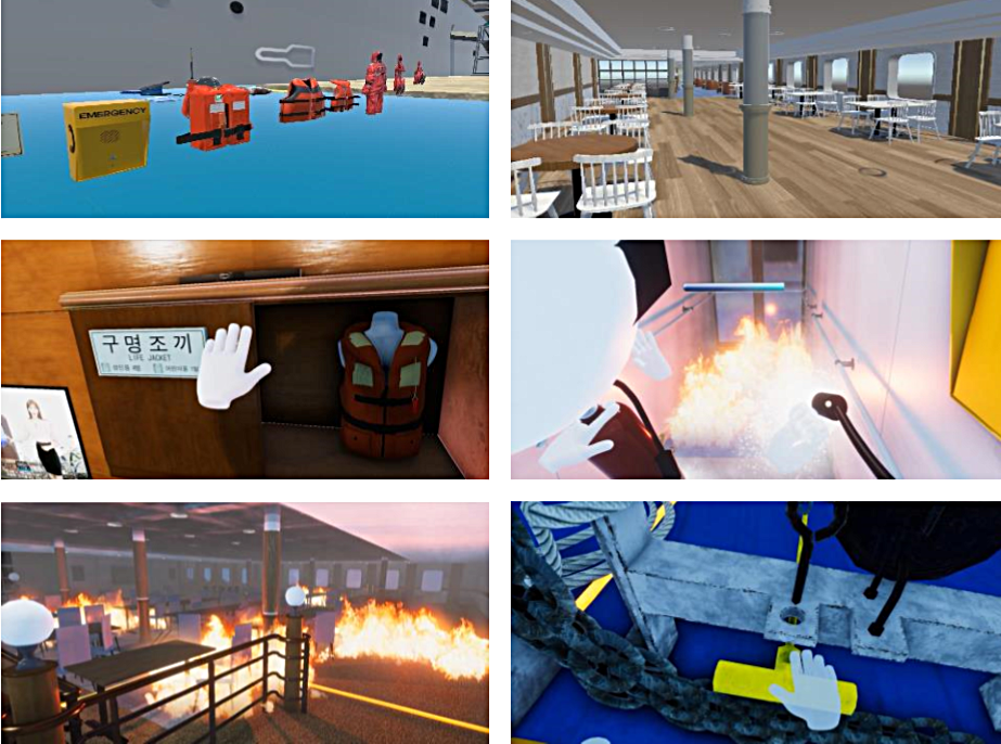 현실과 똑같이 구현된 가상의 여객선에서 해상 재난 상황 발생 시,