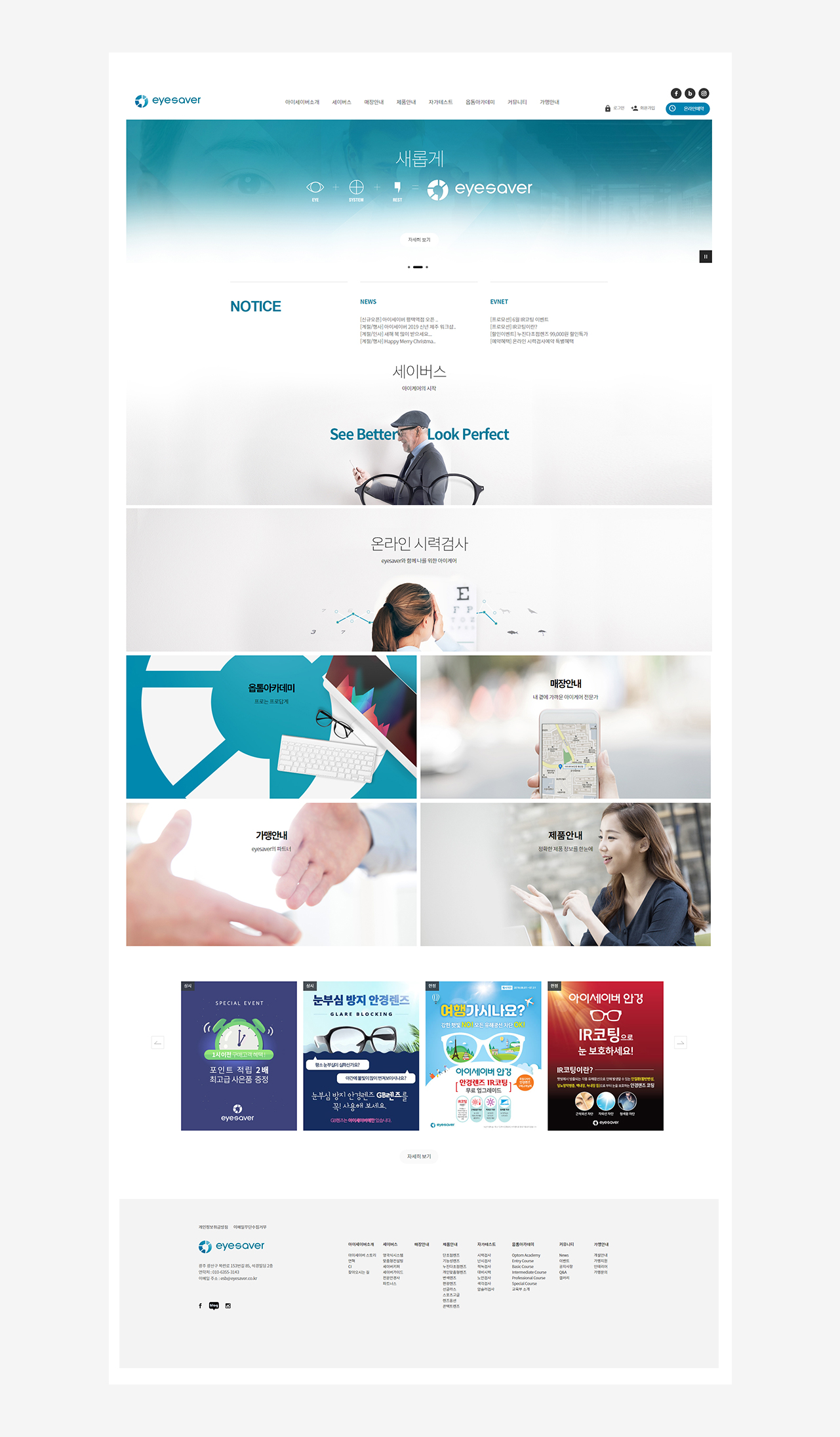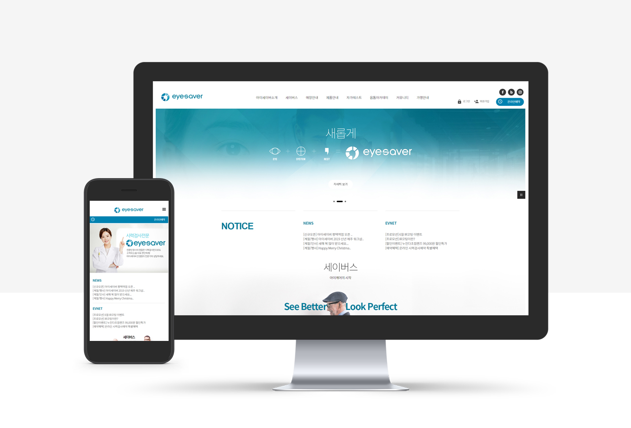 아이케어 전문 브랜드 아이세이버의 정통성과 리브랜딩 된 콘셉트에 맞는 컬러와 메타포를 활용하여