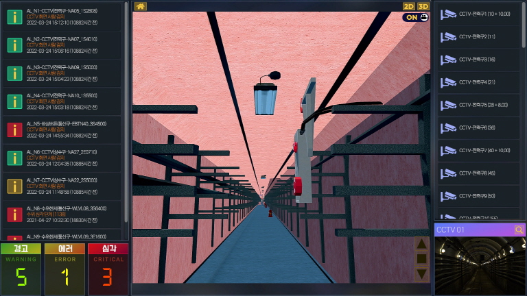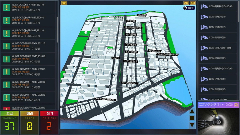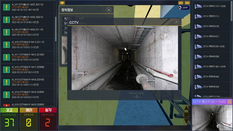 2D↔3D맞춤형 화면제어와 내ㆍ외부 실시간 데이터 연계로 CCTV영상확인, 관리시설 상태정보